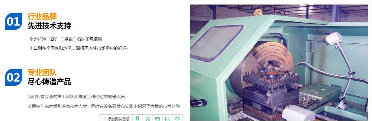 德州卓銳石油機(jī)械有限公司成立于2008年10月,專業(yè)生產(chǎn)螺桿鉆具拆裝架、無磁懸掛短節(jié)、螺桿鉆具配件、螺桿清膠機(jī)、PDC平面軸承、可調(diào)鉆具配件、360度全旋轉(zhuǎn)拆裝架、螺桿鉆具整機(jī)試驗(yàn)臺(tái)、螺桿鉆具馬達(dá)試驗(yàn)臺(tái)、渦輪鉆具配件、等壁厚螺桿定子加工機(jī)床、等壁厚螺桿鉆具等石油鉆井工具,打撈工具,固井工具及其配件。公司確立并始終堅(jiān)持不懈地發(fā)揚(yáng)“誠(chéng)信,務(wù)實(shí),高效,創(chuàng)新”的企業(yè)精神全力打造“ZR”(卓銳)石油工具品牌。業(yè)務(wù)實(shí)現(xiàn)了快速發(fā)展,并得到業(yè)內(nèi)人士的廣泛認(rèn)同,成為石油裝備制造業(yè)一顆璀璨的新星。